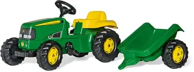 🚜 Rolly Toys John Deere -polkutraktori peräkärryllä on pieni seikkailu isolla sydämellä. Vankka ja näyttävä lelu, jolla 2,5–5-vuotiaat kuskit pääsevät polkemaan, kuljettamaan ja leikkimään kuin oikeat maanviljelijät.